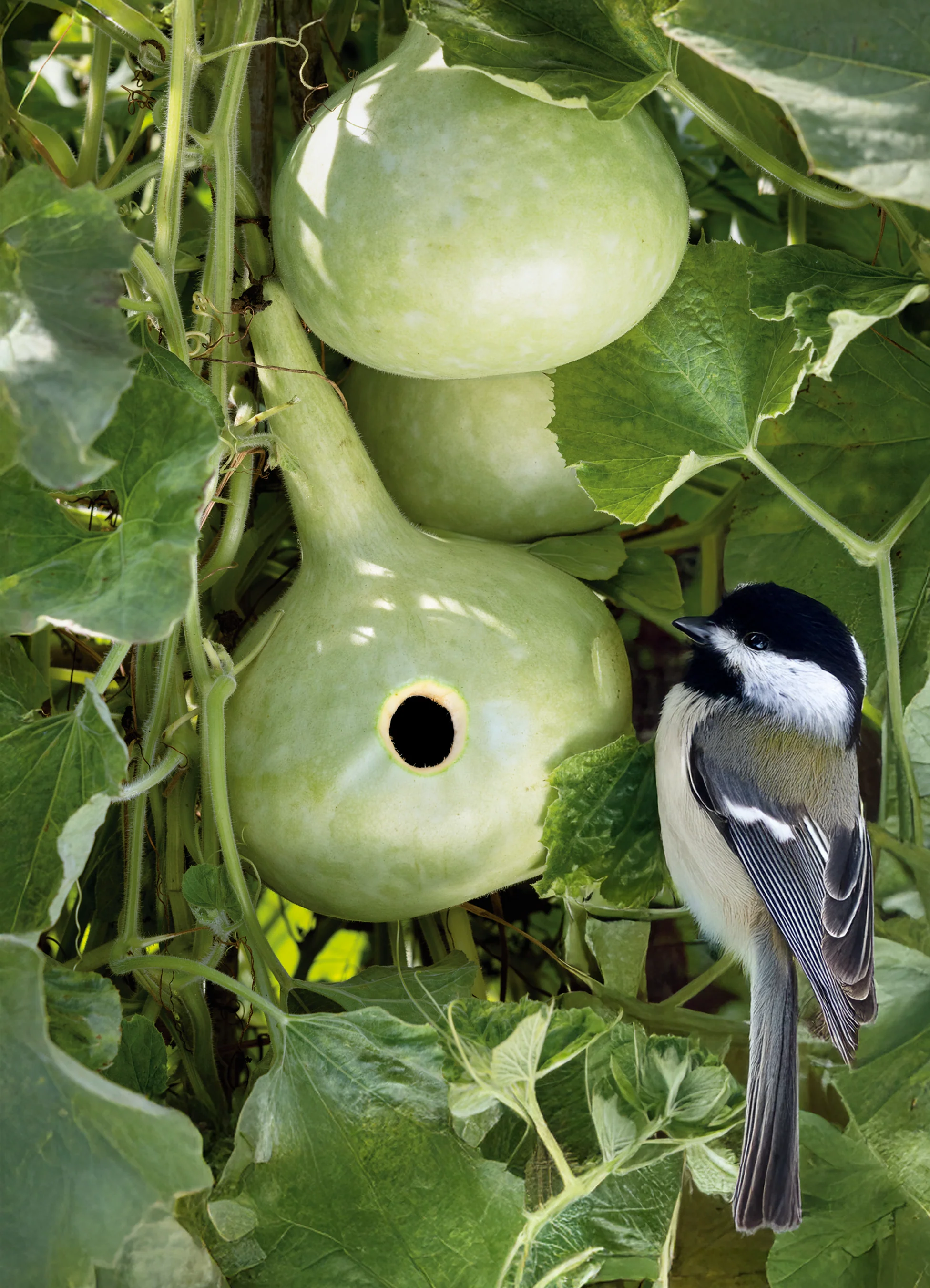 Once dried, this uniquely-shaped gourd is painted and carved to make a durable home for our feathered backyard friends. No need to scoop out the insides, as the fruits hollow after the drying process.